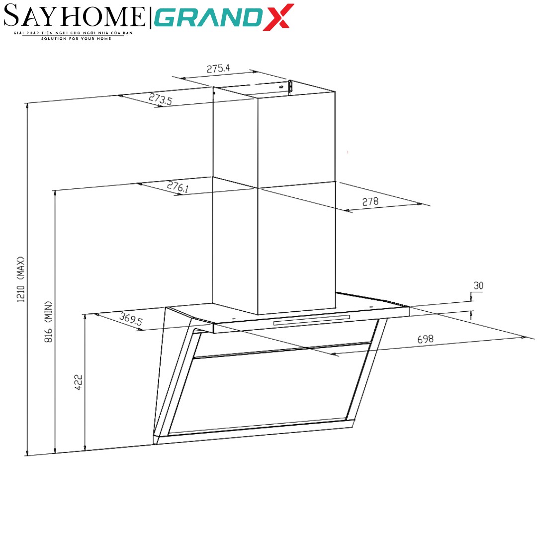 HÌNH ẢNH THỰC TẾ CỦA MÁY HÚT MÙI KÍNH VÁT, ÁP TƯỜNG GRANDX GX H70T88G/ GX H90T88G