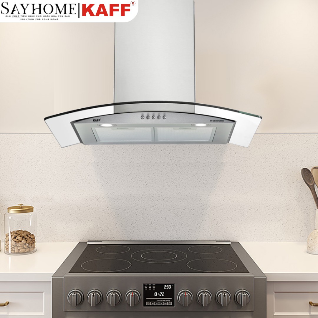 SAYHOME - Solutions for your Home sẽ mang đến cho gia đình bạn một gian bếp đẳng cấp với sản phẩm Máy hút mùi kính cong KAFF KF-GB705/GB905 sở hữu thiết kế sang trọng, hiện đại. Với thiết kế độc đáo 2 trong 1, máy hút mùi kết hợp giữa tính năng và thẩm mỹ là sự lựa chọn tuyệt vời cho những ai yêu thích sự tinh tế, đơn giản và tính cách tự do trong thiết kế bếp. Không bị giới hạn bởi vị trí máy hút mùi như cách truyền thống, sản phẩm vô cùng phù hợp cho không gian bếp mở, không cần tủ bếp. Hơn cả thẩm mỹ, công nghệ bếp tiên tiến cùng công suất hút mạnh mẽ cho bạn trải nghiệm nấu nướng tuyệt vời trong một gian bếp hoàn toàn sạch mùi và trong lành.