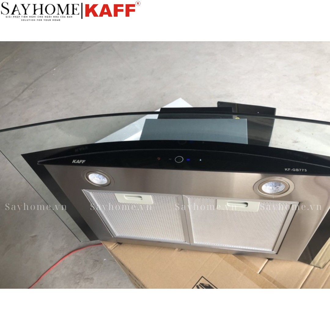 - Máy hút mùi kính cong cảm ứng KAFF KF-GB773/GB973, với các chức năng đặc biệt, được lắp ráp bởi vật liệu hạng nhất giúp làm sạch không khí, giữ căn bếp trở lên thoáng mát và đảm bảo yếu tố thẩm mỹ cũng như tính bền bỉ theo thời gian.