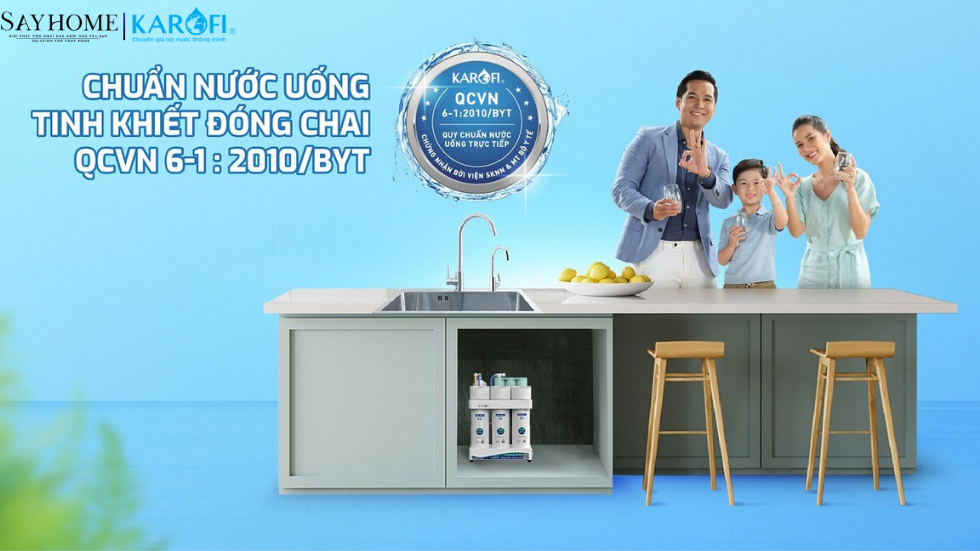 Nguồn nước sau lọc từ máy lọc nước Karofi KAQ-U05 Pro đạt chuẩn nước uống tinh khiết đóng chai QCVN 6-1:2010/BYT do Viện Sức khỏe nghề nghiệp & Môi trường – Bộ Y Tế công nhận theo quy trình của WHO.