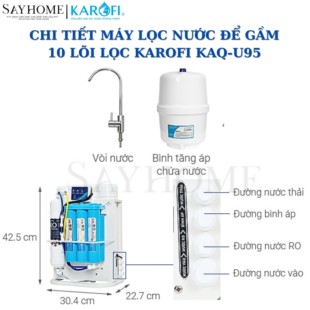 MÁY LỌC NƯỚC ĐỂ GẦM CÔNG NGHỆ THÔNG MINH AIOTEC KAROFI KAQ-U95 - BẢO HÀNH 36 THÁNG