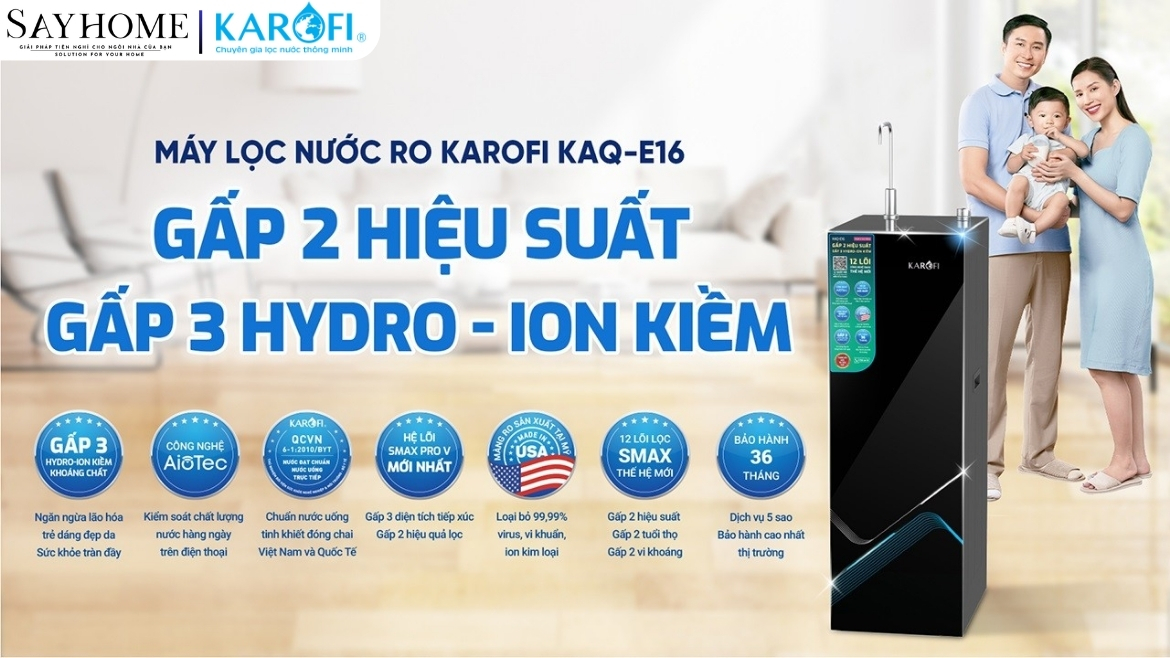 MÁY LỌC NƯỚC KAROFI KAQ-E16: GẤP 2 HIỆU SUẤT – GẤP 3 KHOÁNG CHẤT