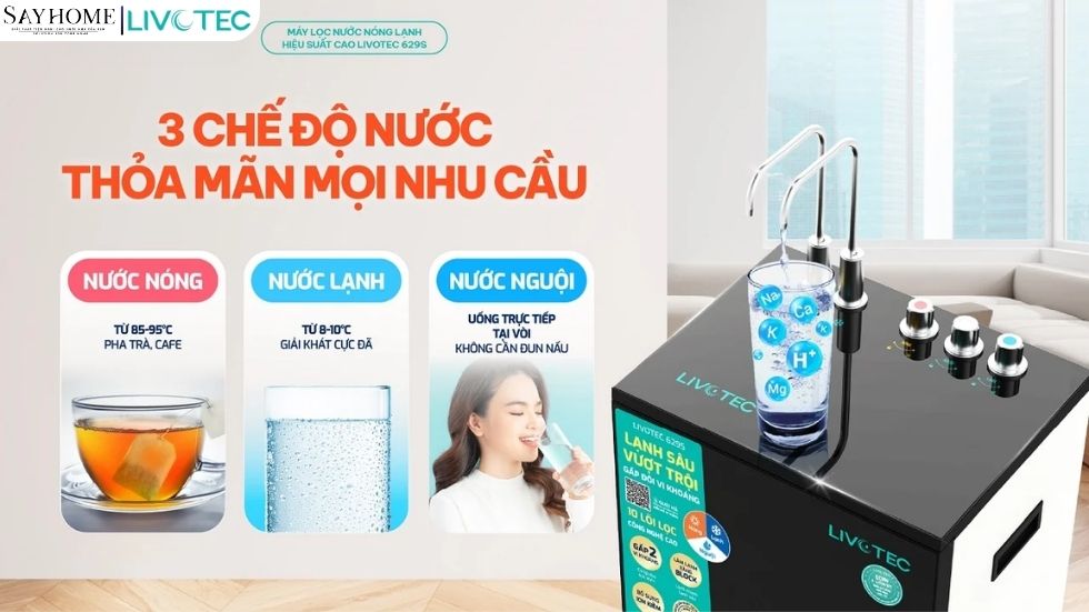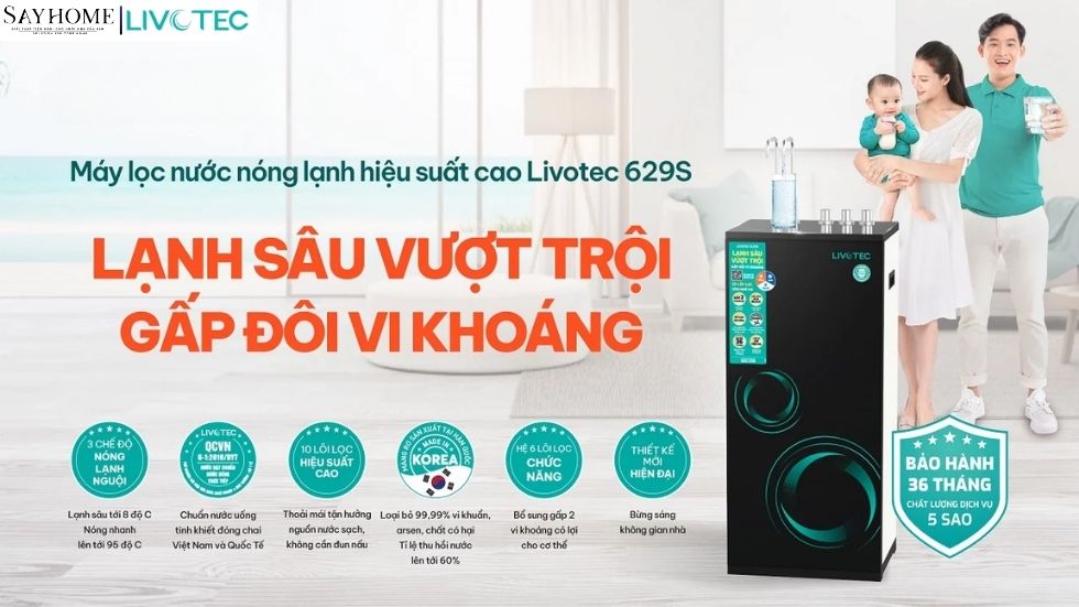 MÁY LỌC NƯỚC NÓNG LẠNH LIVOTEC 629S: LẠNH SÂU VƯỢT TRỘI – GẤP ĐÔI VI KHOÁNG