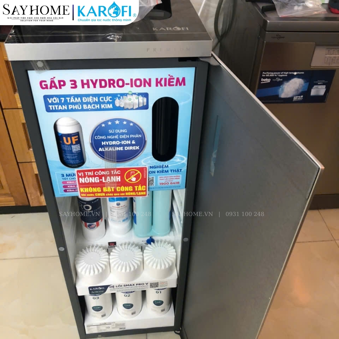 HÌNH ẢNH THỰC TẾ CỦA MÁY LỌC NƯỚC NÓNG LẠNH HYDRO-ION KIỀM KAROFI KAE-S88 PROMAX