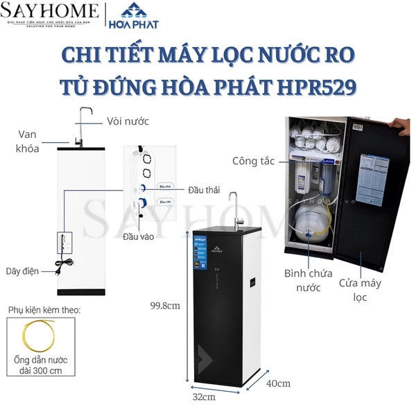 Máy lọc nước RO Hòa Phát HPR529 là máy lọc nước 10 lõi lọc công suất 15 lít/giờ và màng lọc RO 75 GPD nhập khẩu Thái Lan đạt tiêu chuẩn quốc tế NSF/ ANSI 58. Cung cấp nước sau lọc đạt chuẩn nước uống trực tiếp của Bộ Y Tế. Cung cấp 3 chức năng lấy nước nóng – lạnh – nguội với công nghệ làm lạnh Block. 6 màng lọc chức năng bao gồm cả Hydrogen & Nano Silver bổ xung khoáng chất tốt cho sức khỏe.