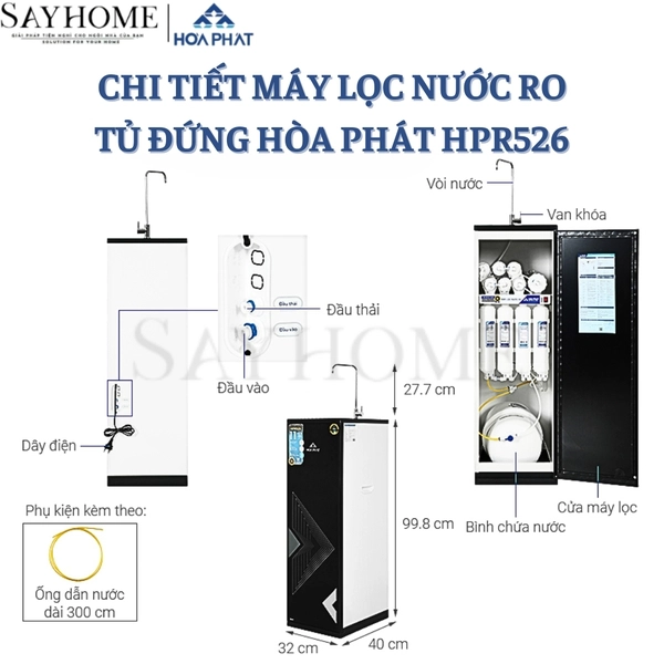 Máy lọc nước RO Hòa Phát HPR526 là máy lọc nước với 11 lõi lọc công suất 15 lít/giờ và màng lọc RO 75 GPD nhập khẩu Hàn Quốc đạt tiêu chuẩn quốc tế NSF/ ANSI 58. Cung cấp nước sau lọc đạt chuẩn nước uống trực tiếp của Bộ Y Tế.