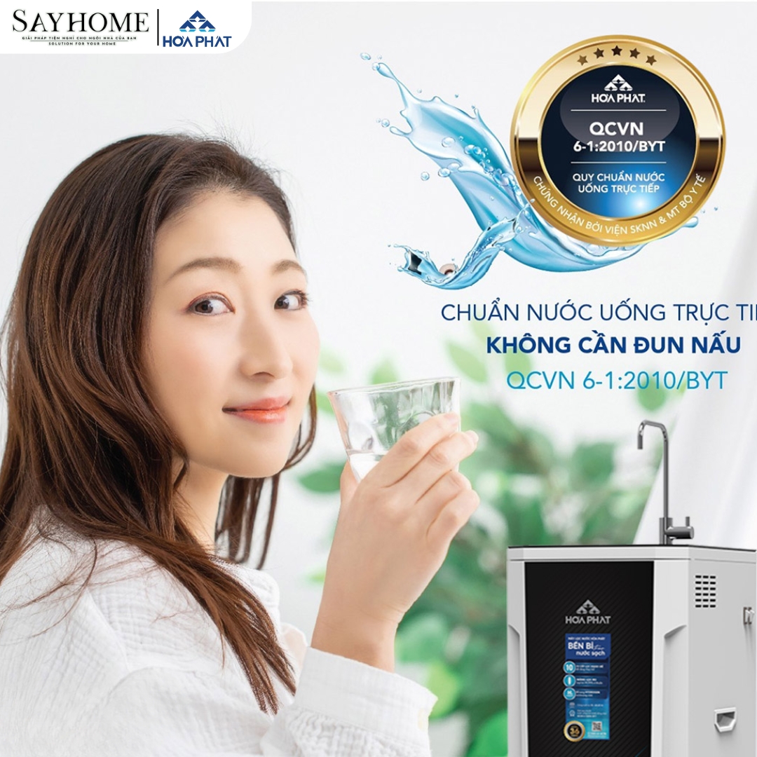 Máy lọc nước Hòa Phát HPR515 đạt chuẩn nước tinh khiết uống trực tiếp