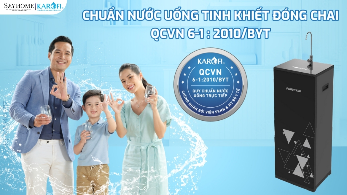 Nước uống trực tiếp đạt chuẩn: Đạt tiêu chuẩn nước uống trực tiếp QCVN 6-1:2010/BYT và TCVN 11978:2017, đảm bảo an toàn tuyệt đối cho sức khỏe.