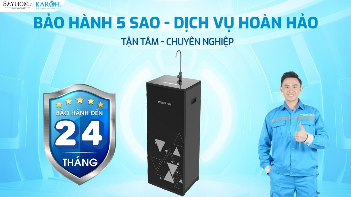 Máy lọc nước RO Karofi Purastar P38 áp dụng bảo hành đến 24 tháng với đội ngũ kỹ thuật viên, chăm sóc khách hàng chuẩn chuyên gia của Karofi.