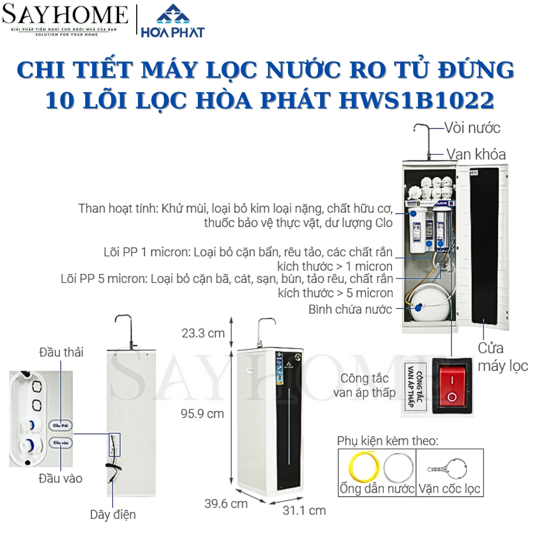 MÁY LỌC NƯỚC TỦ ĐỨNG VỚI 10 LÕI LỌC RO HÒA PHÁT HWS1B1022- BẢO HÀNH CHÍNH HÀNG 36 THÁNG