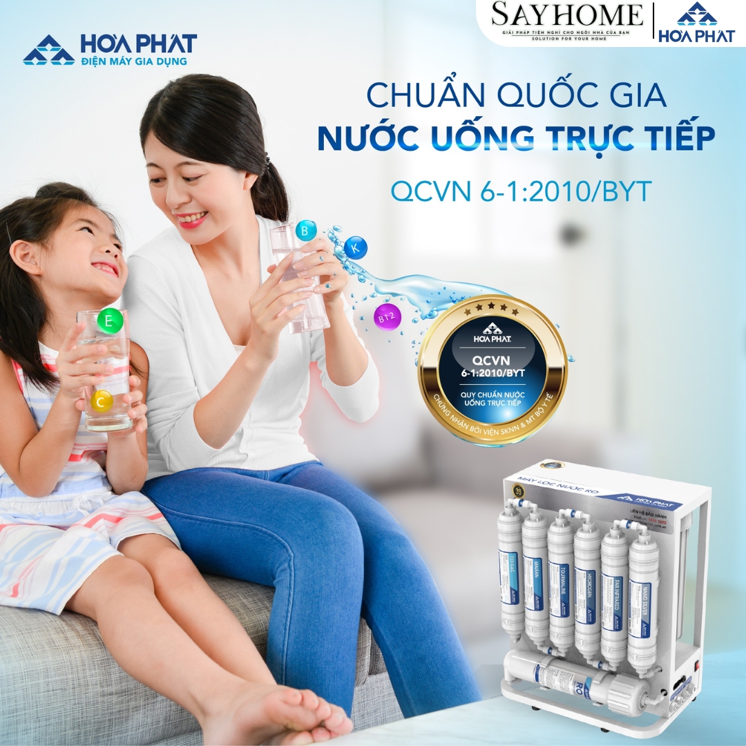 Máy lọc nước Hòa Phát để gầm HWU1A1022 đạt chuẩn quốc giá nước tinh khiết uống trực tiếp theo tiêu chuẩn của Bộ Y Tế QCVN 6-1:2010/ BYT.