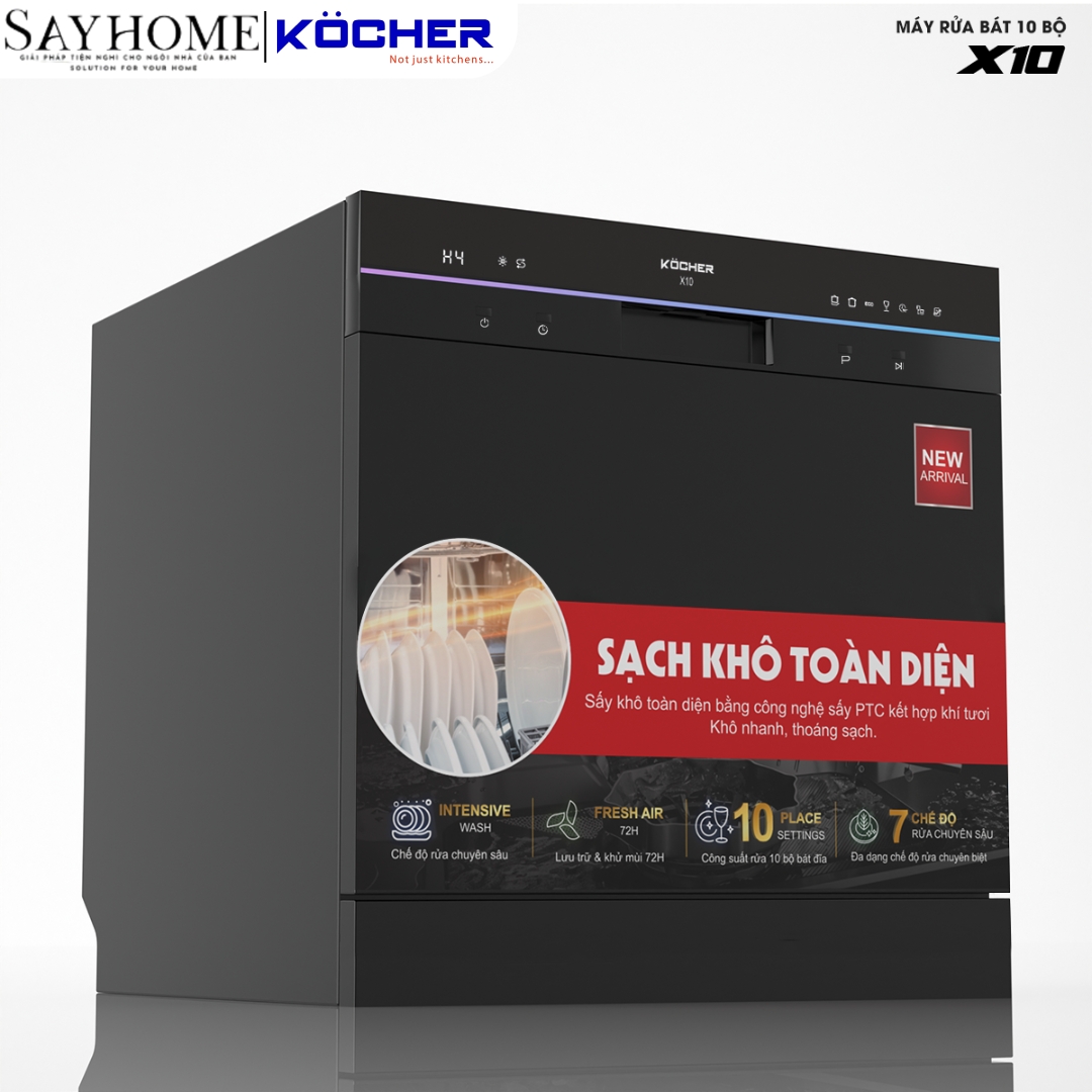 MÁY RỬA BÁT KOCHER X10 10 BỘ ĐỒ ĂN CHÂU ÂU - BẢO HÀNH CHÍNH HÃNG 3 NĂM