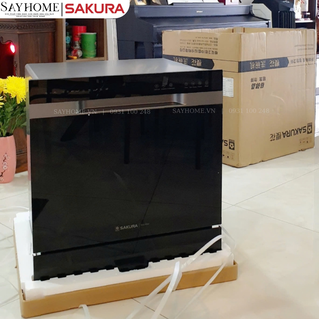- Máy rửa chén Sakura SCE-W850 thiết kế nhỏ gọn, tiện lợi để lắp đặt trên bàn bếp mà không chiếm nhiều diện tích. Hoặc bạn cũng có thể tích hợp vào tủ bếp để tiết kiệm không gian.