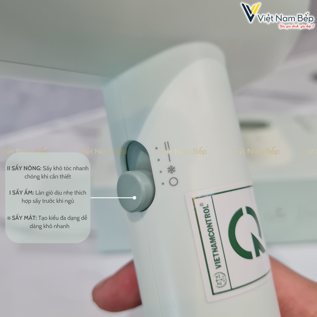 Máy sấy tóc này cung cấp 2 mức gió và 3 mức nhiệt độ sấy nóng/ ấm/ mát, cho phép bạn linh hoạt chọn chế độ phù hợp với nhu cầu và kiểu tóc của mình. Bạn có thể điều chỉnh nhiệt độ và tốc độ gió để tạo kiểu tóc một cách dễ dàng và đạt được kết quả mong muốn.