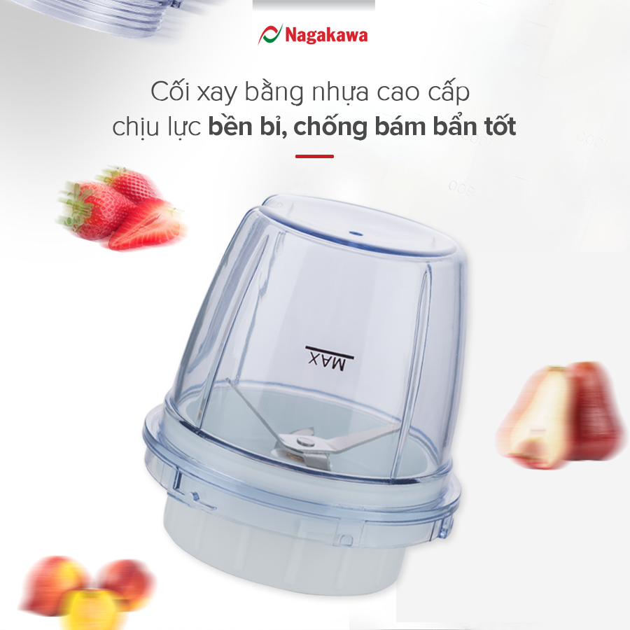 Máy xay sinh tố Nagakawa NAG0809 có cối xay được làm từ chất liệu nhựa kháng vỡ với khả năng chịu lực và chịu nhiệt tốt, không bị nứt vỡ khi xay ở tốc độ cao, không chứa hóa chất độc hại, đảm bảo an toàn tuyệt đối cho sức khỏe người dùng.