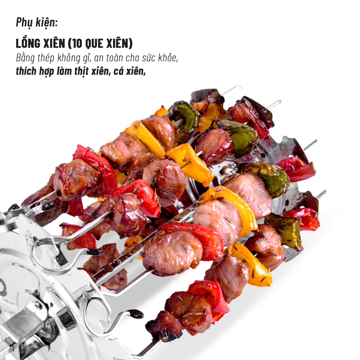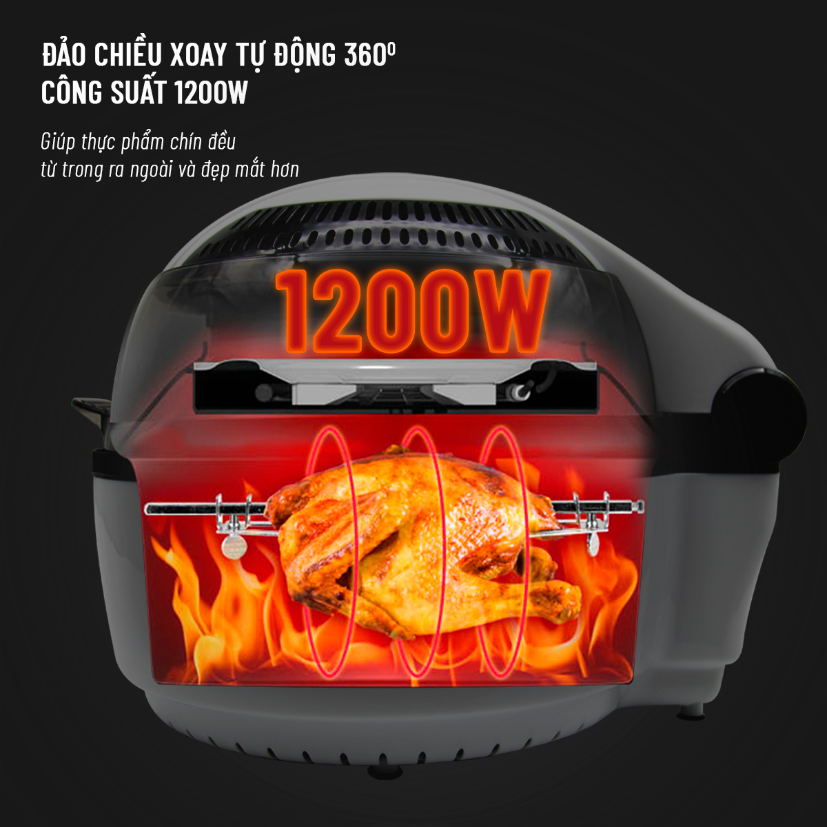 NỒI CHIÊN KHÔNG DẦU SMARTPLUS NAGAKAWA NAG3303 Với trục xoay lò nướng tự đảo chiều 360° việc vận hành điều phối nhiệt đều giúp cho thực phẩm quay đều, chín đều và ngon hơn.