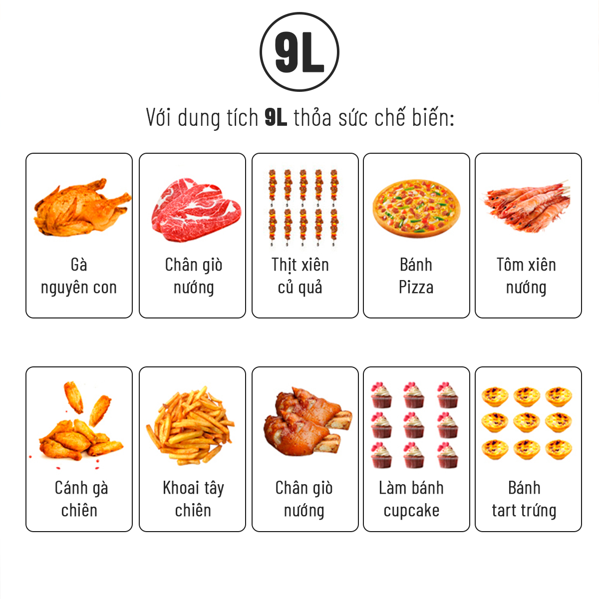 Dung tích 9.0 lít phù hợp với mọi loại thực phẩm