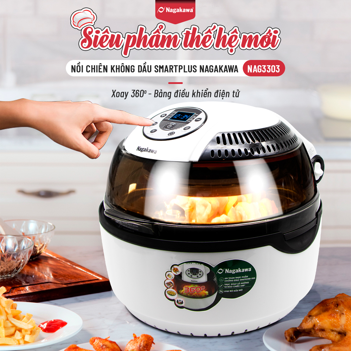 Nồi chiên không dầu là một trong những vật dụng nhà bếp được chị em nội trợ quan tâm tìm hiểu và sử dụng nhiều nhất hiện nay, chiếc nồi này còn được gọi với tên gọi khác là nồi chiên không dầu, nồi chiên chân không, nồi chiên không khí. Chiếc nồi này là sản phẩm công nghệ cực kì thông minh sử dụng phương pháp chiên chân không giúp thức ăn chín đều vàng giòn mà không cần sử dụng quá nhiều dầu mỡ. Nồi chiên không dầu SmartPlus Nagakawa NAG3303 sở hữu thiết kế độc đáo, kết hợp tông đen trắng hiện đại, trẻ trung, tinh tế mang đến sự sang trọng cho không gian sử dụng.