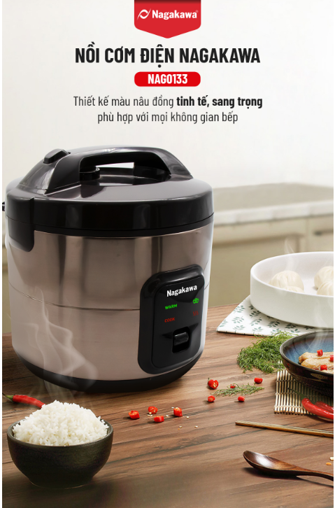 Sau một ngày làm việc mệt mỏi, cả gia đình được cùng nhau quây quần với nhau bên mâm cơm là khoảng thời gian thiêng liêng, ấm áp và hạnh phúc nhất. Ngày nay việc nấu cơm trở nên đơn giản, nhanh gọn hơn nhờ có nồi cơm điện. Nấu cơm hoàn toàn tự động chỉ qua 1 nút bấm. Để có những hạt cơm thơm ngon mang đến sự ngọt ngào cho mái ấm gia đình , SAYHOME xin giới thiệu nồi cơm điện Nagakawa NAG0133 , người nội trợ có thể tiết kiệm thời gian vào bếp và sẽ đem lại cho gia đình của mình hạt cơm thơm, dẻo. Bạn hãy đến với SAYHOME để sở hữu ngay nồi cơm điện Nagakawa NAG0101 trong những sản phẩm bán chạy trên thị trường hiện nay.