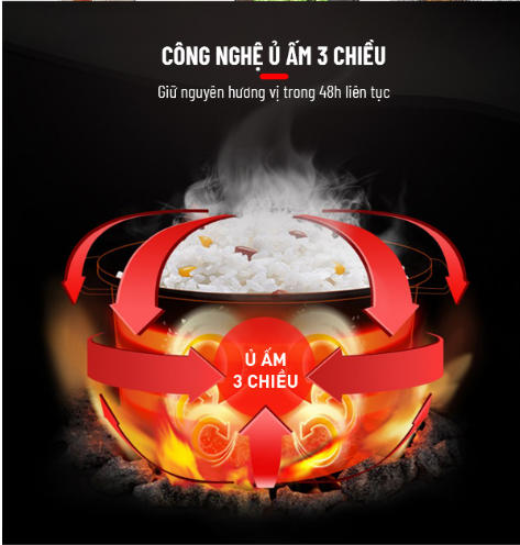 Nồi Nagakawa NAG0133 giúp giữ nguyên vẹn hương vị thơm ngon và độ ấm của cơm trong suốt 48 giờ liên tục với công nghệ ủ ấm 3 chiều đảm bảo bữa cơm gia đình luôn được nóng hổi, không bị khô vàng và cháy khét cơm ngon cho đến cuối buổi.