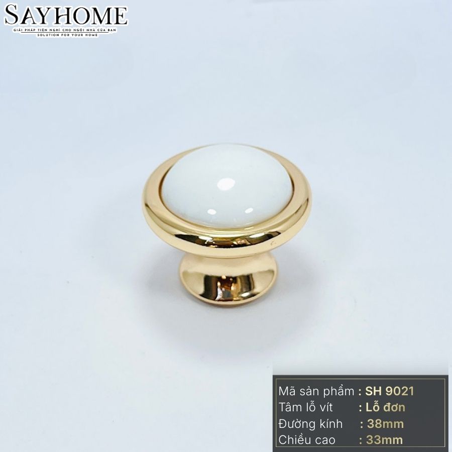 Tay nắm núm tròn gốm sứ hiện đại SH9021 là sự kết hợp hài hòa giữa chất liệu gốm sứ trắng tinh tế và kim loại mạ vàng bóng sang trọng. Sản phẩm mang phong cách hiện đại, thiết kế tối giản nhưng vẫn tạo điểm nhấn nổi bật, phù hợp với nhiều không gian nội thất từ nhà ở đến căn hộ cao cấp. Đây là dòng tay nắm cao cấp do SAYHOME phân phối, đáp ứng nhu cầu thẩm mỹ và công năng sử dụng lâu dài.