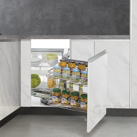Kệ góc liên hoàn GROB GN- 90L, GN- 90R đa năng inox mạ Crom, nan sợi - Hàng chính hãng GROB