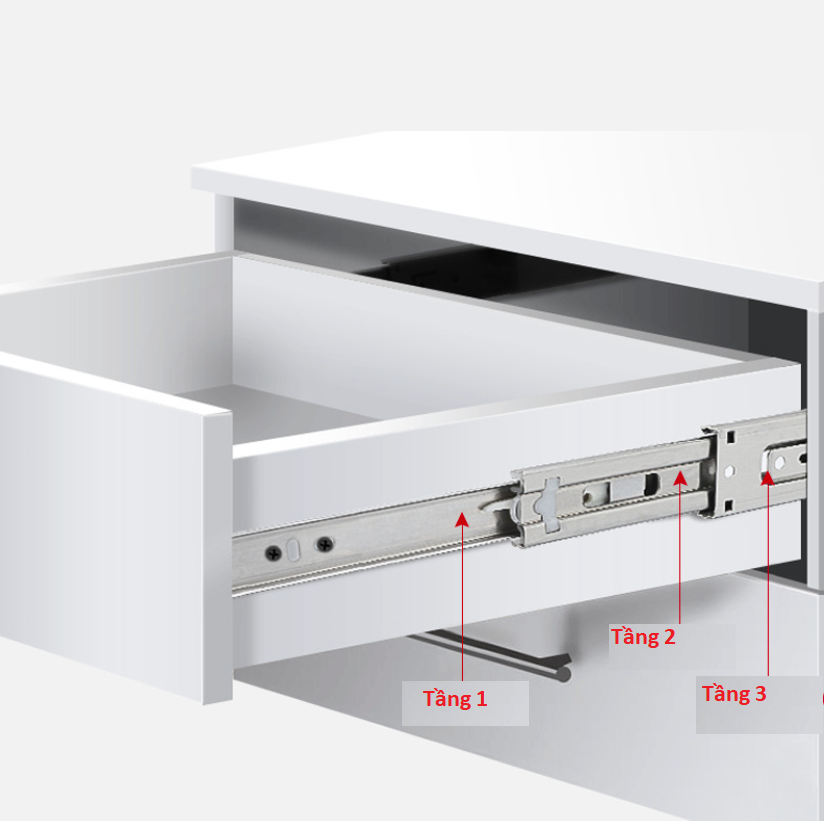 3. Hình ảnh ray bi 3 tầng trắng có giảm chấn bản 45mm ( loại dày)