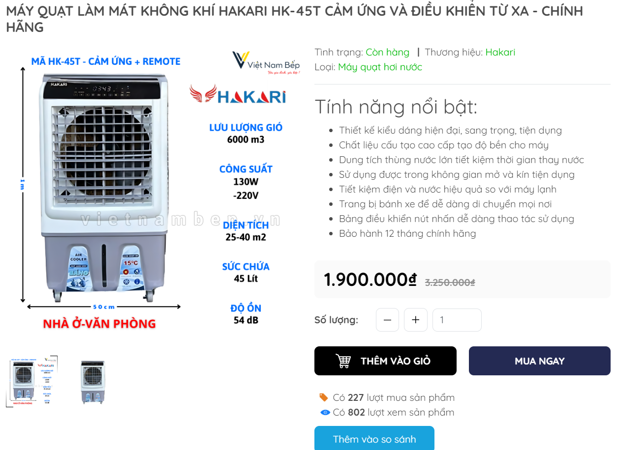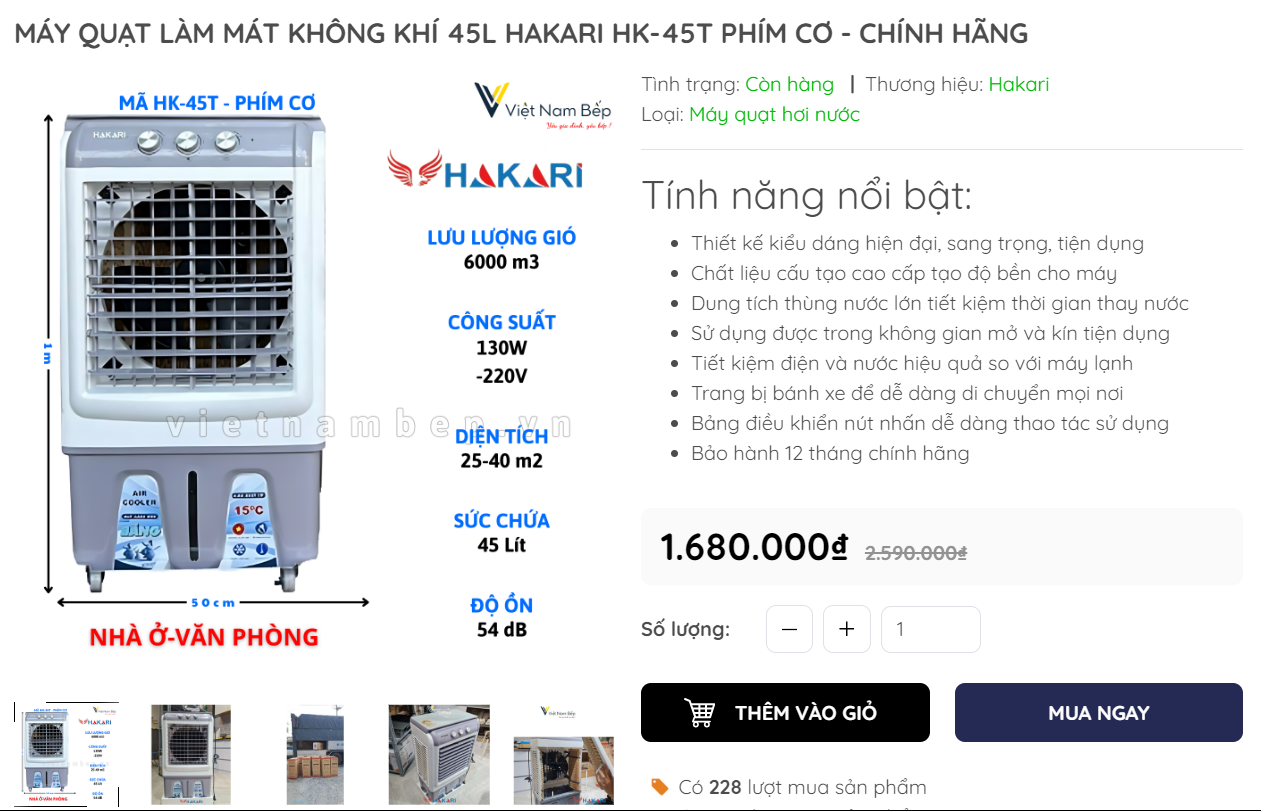 Mua sản phẩm máy quạt hơi nước và quạt điều hòa chính hãng ở đâu luôn là câu hỏi mà người tiêu dùng thắc mắc khi có ý định mua máy làm mát vào mùa hè nóng nực, oi bức với giá hời mới chất lượng chính hãng. Hiện nay Việt Nam Bếp - đại diện phân phối của nhiều hãng lớn uy tín như: Symphony, Hakari, Ladomax, Sunhouse, Rapido,... với đội ngũ nhân viên chuyên nghiệp, am hiểu về sản phẩm, đội ngũ kỹ thuật lành nghề, có thể giải đáp mọi thắc mắc về những vấn đề " nhà mình" đang quan tâm cùng dịch vụ lắp đặt hậu mãi ân cần!