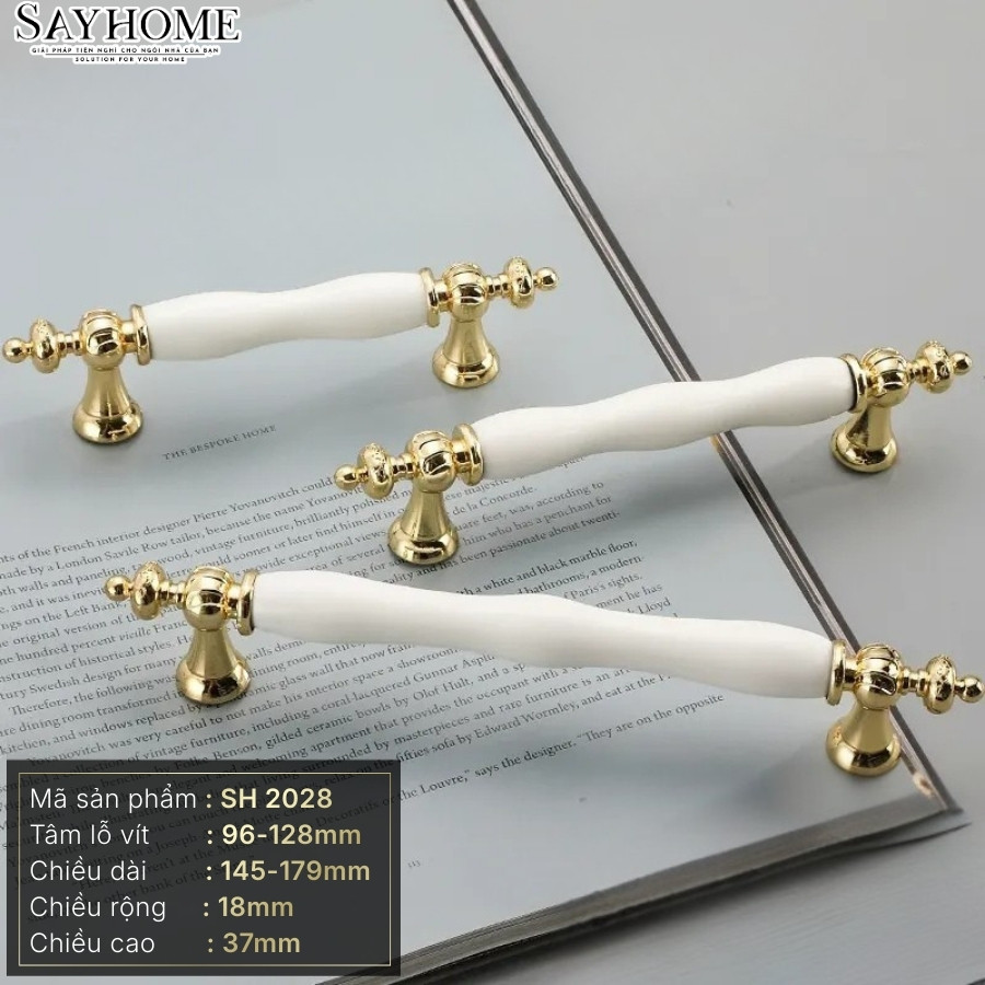 TAY NẮM TỦ TÂN CỔ ĐIỂN MÀU VÀNG MẶT SỨ TRẮNG SH2028