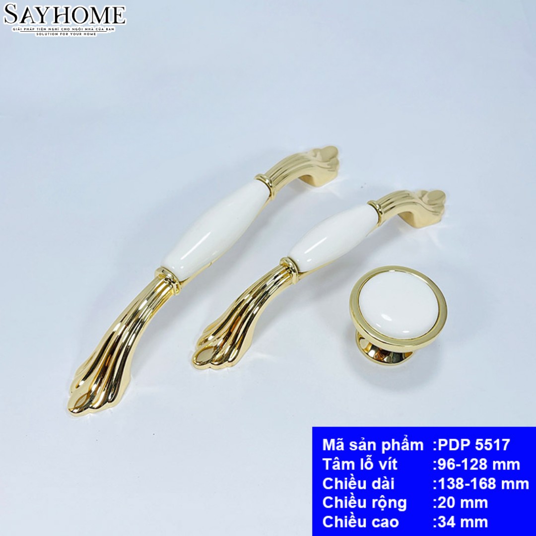 Tay Nắm Tủ Gốm Sứ Phong Cách Châu Âu PDP5517 – Màu Vàng Bóng & Trắng Tinh Khôi