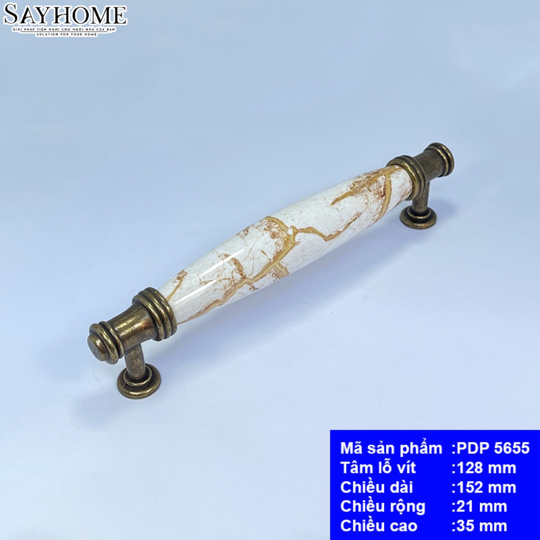 Tay Nắm Tủ Gốm Sứ Cổ Điển PDP5655 – Màu Vàng Mờ