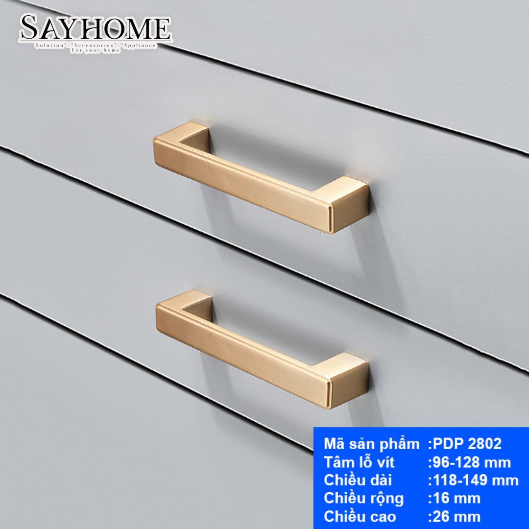 Tay Nắm Tủ Hiện Đại Màu Vàng Chải Xước PDP2802 đồng bộ với kết cấu khối vuông, tinh tế với màu vàng chải xước mang lại vẻ đẹp thanh lịch cho tổng thể