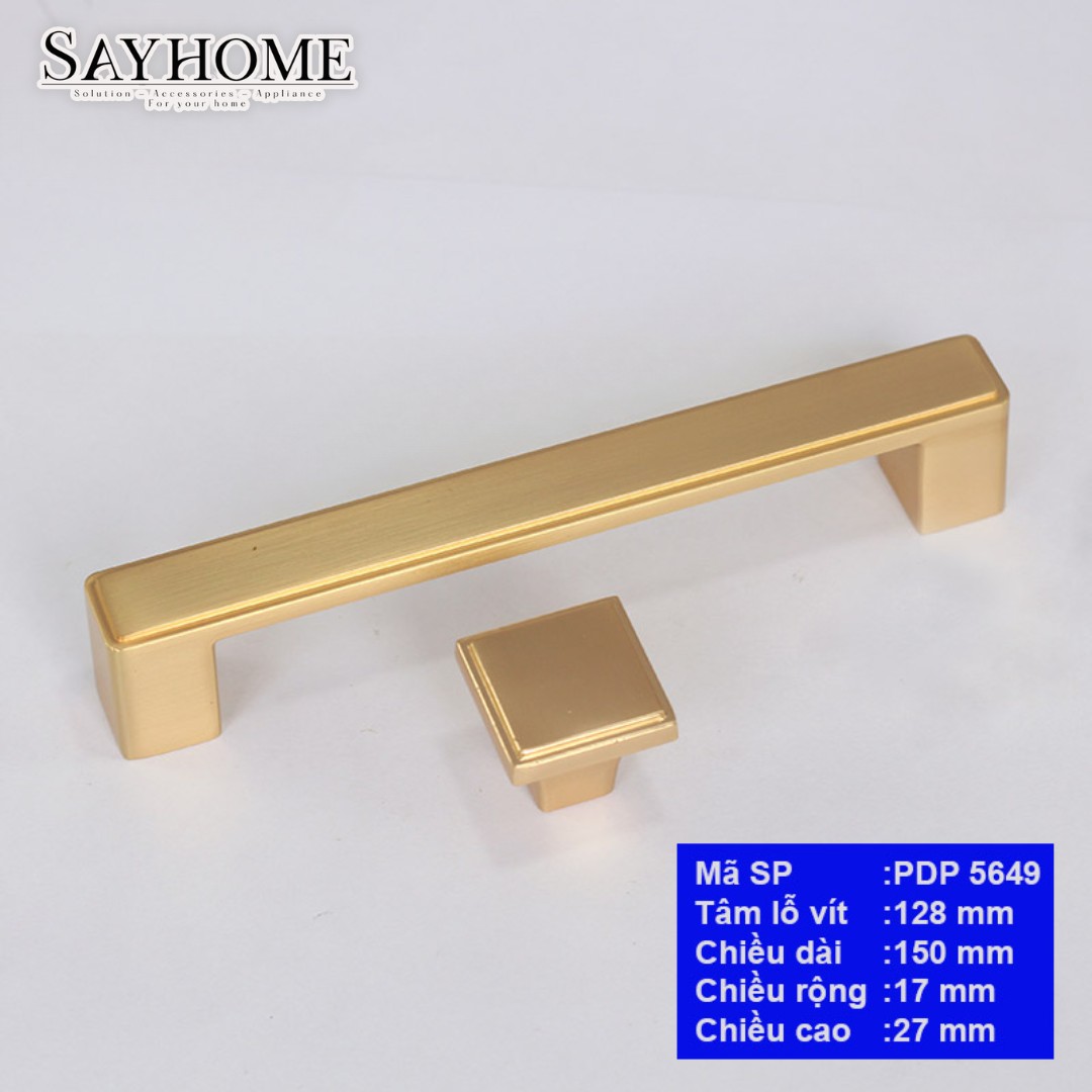 Tay Nắm Tủ Hiện Đại Phong Cách Châu Âu SH5649 đồng bộ với kết cấu khối vuông, tinh tế với màu vàng chải xước mang lại vẻ đẹp thanh lịch cho tổng thể