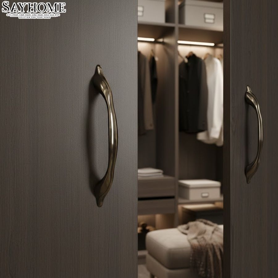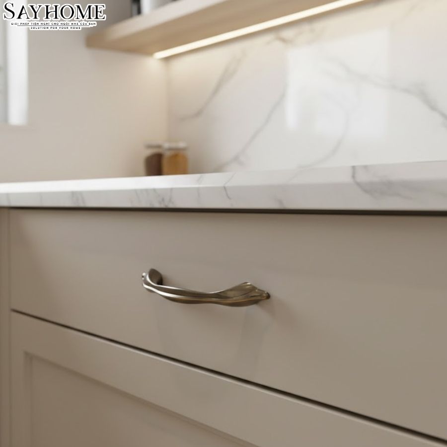 Trong các thiết kế nội thất phong cách Mỹ, sự sang trọng thường đến từ những chi tiết tinh tế nhưng có chiều sâu. Tay nắm tủ phong cách Mỹ màu đồng SH8869 của SAYHOME nổi bật với tạo hình mềm mại, màu sắc trầm ấm và đường nét uyển chuyển, mang đến dấu ấn thẩm mỹ khác biệt cho không gian sống.