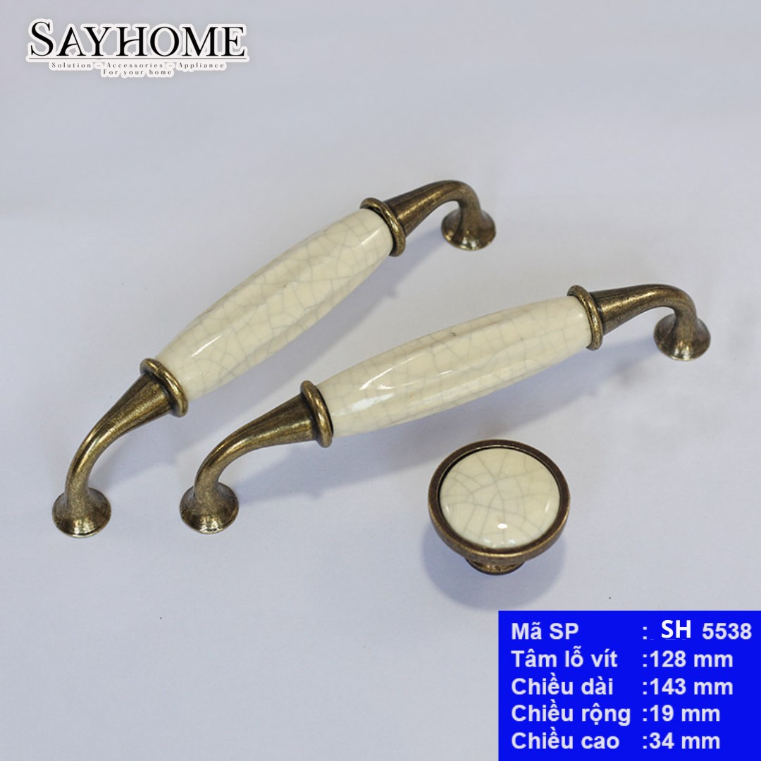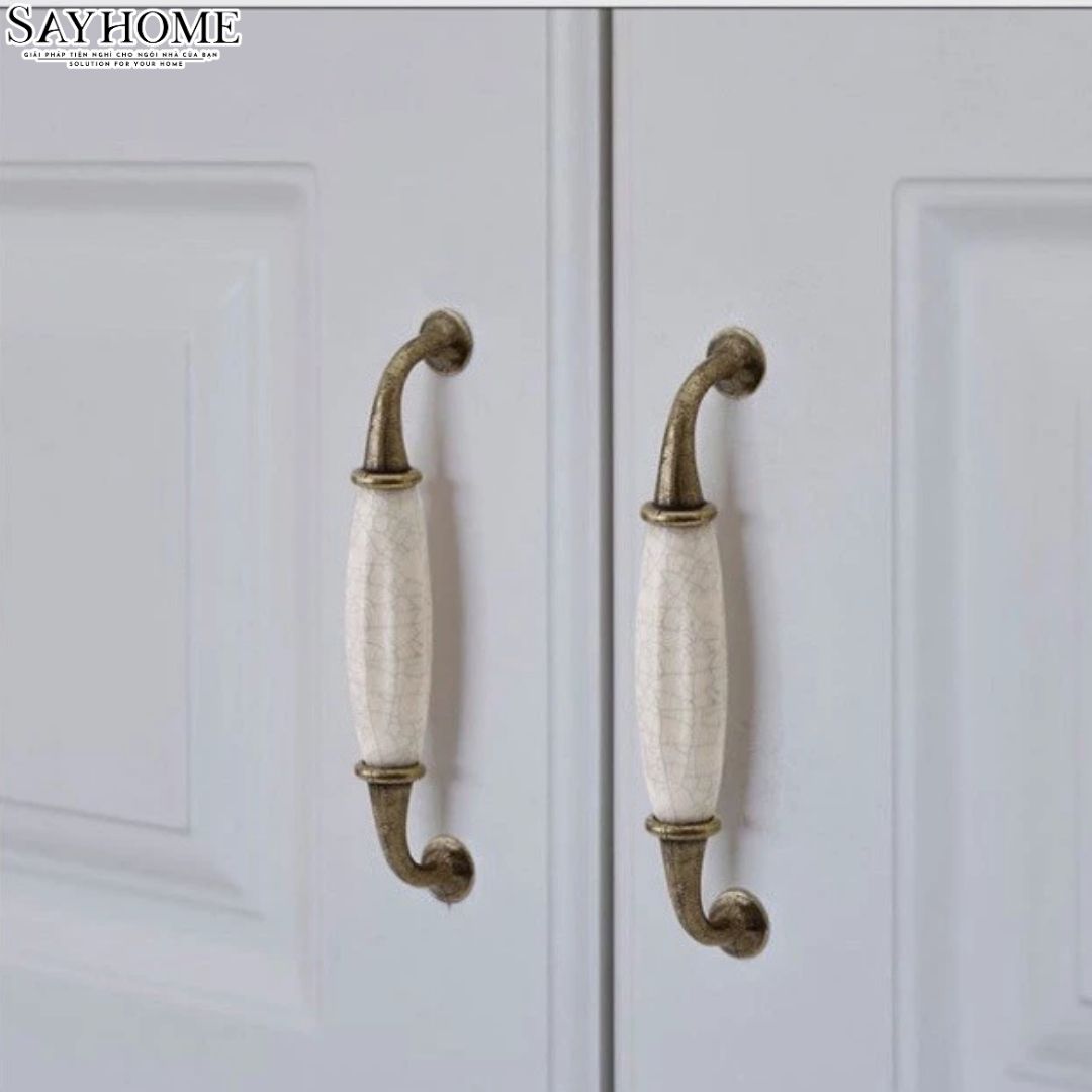 TAY NẮM TỦ TÂN CỔ ĐIỂN MÀU ĐỒNG MẶT SỨ TRẮNG SH5538