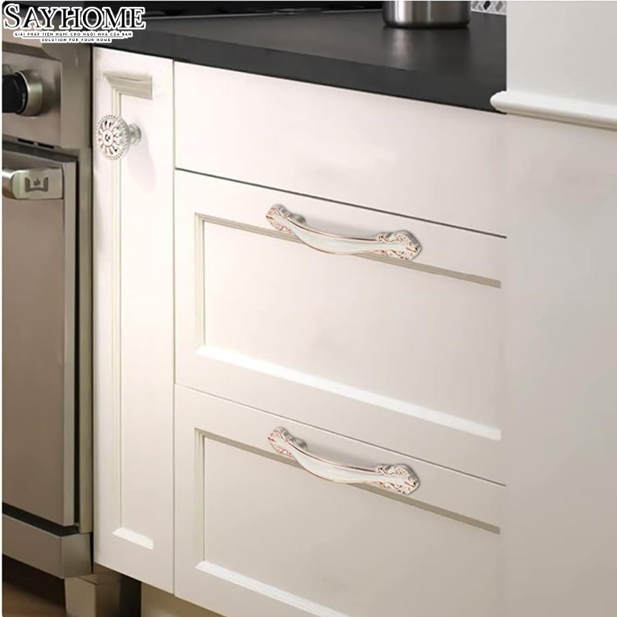 Tay Nắm Tủ Phong Cách Châu Âu Màu Trắng Ngọc Viền Vàng SH9393 – Nét Tinh Xảo Tân Cổ Điển Cho Nội Thất Sang Trọng