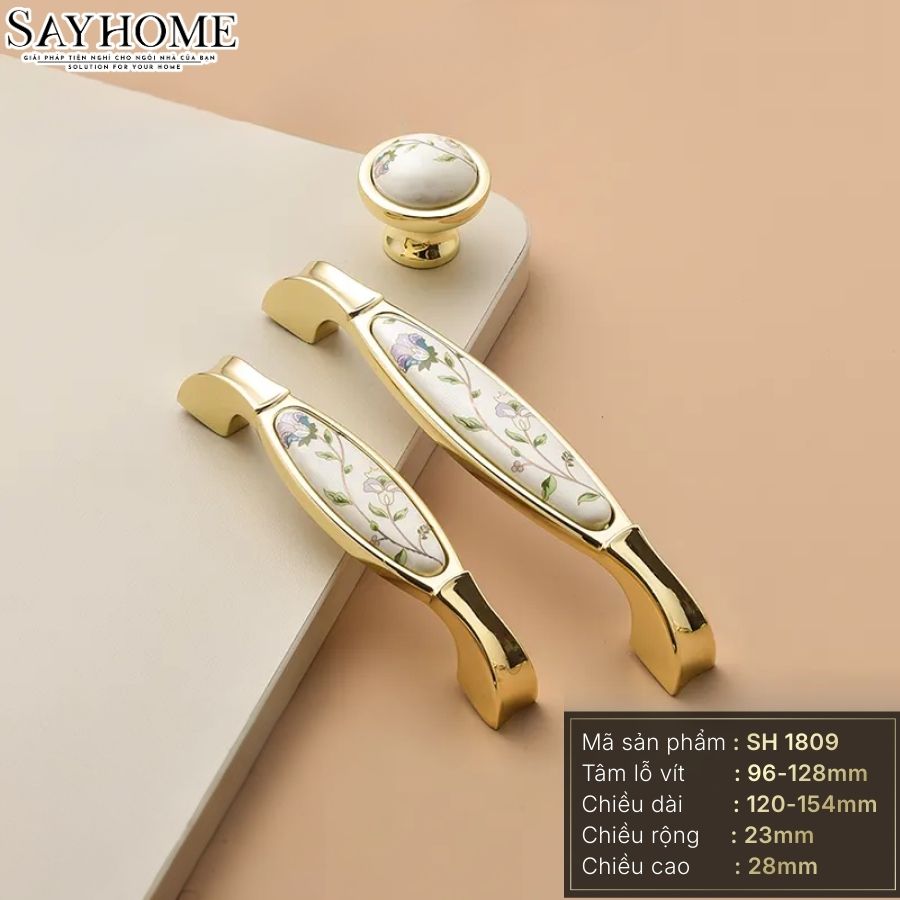 Tay Nắm Tủ Sứ Hoa Văn Vàng Gold SH1809 – Điểm Nhấn Sang Trọng Cho Không Gian Nội Thất