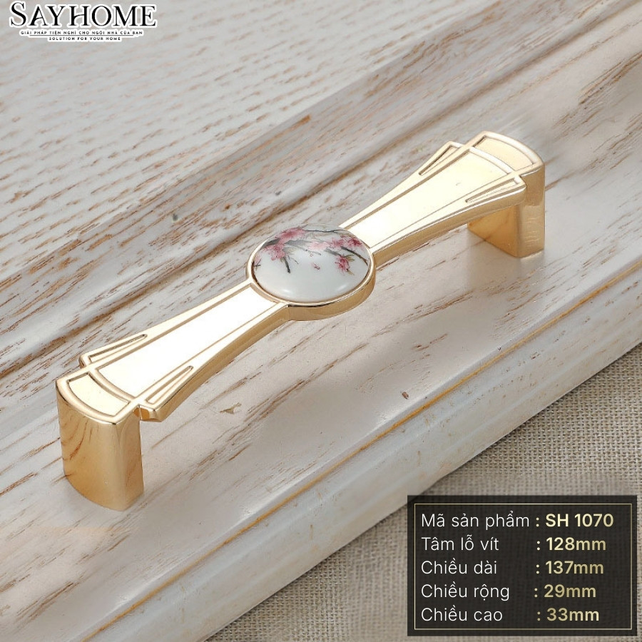 Tay Nắm Tủ Bếp Tân Cổ Điển SH1070 sở hữu thiết kế tinh xảo giúp thể hiện rõ gu thẩm mỹ cá nhân. Đây là dòng tay nắm tủ cao cấp của SAYHOME, mang đến vẻ đẹp sang trọng và đậm chất nghệ thuật cho không gian nội thất.