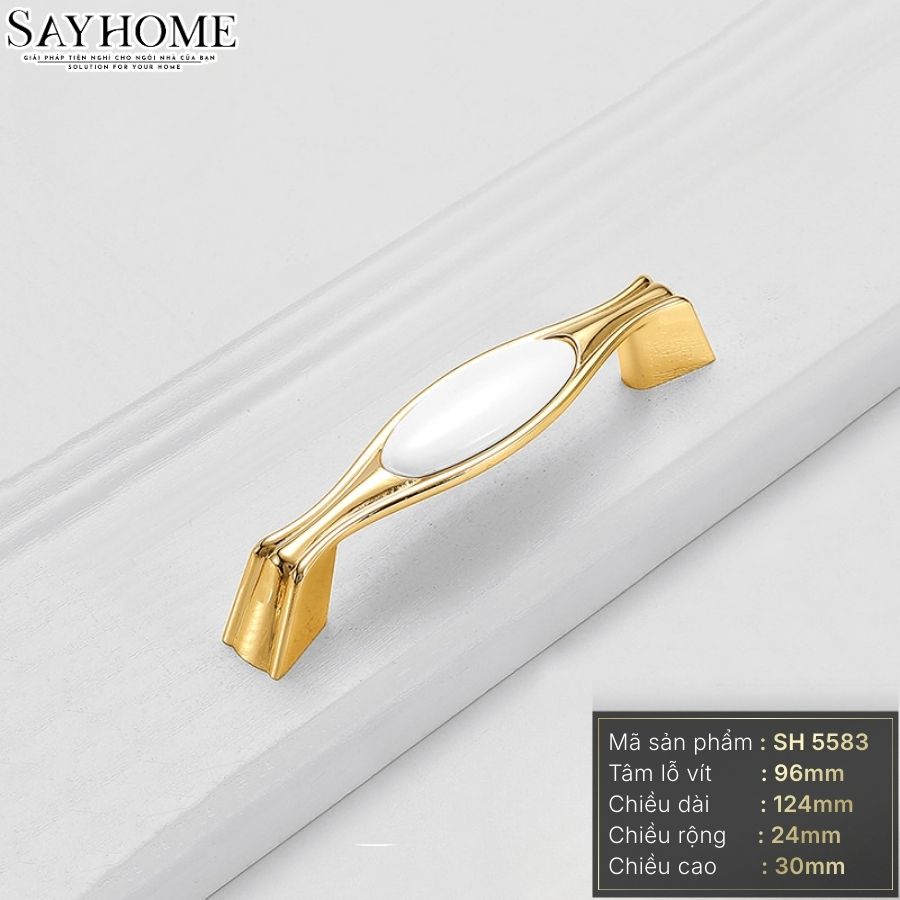 TAY NẮM TỦ TÂN CỔ ĐIỂN MÀU VÀNG GOLD MẶT SỨ TRẮNG SH5583