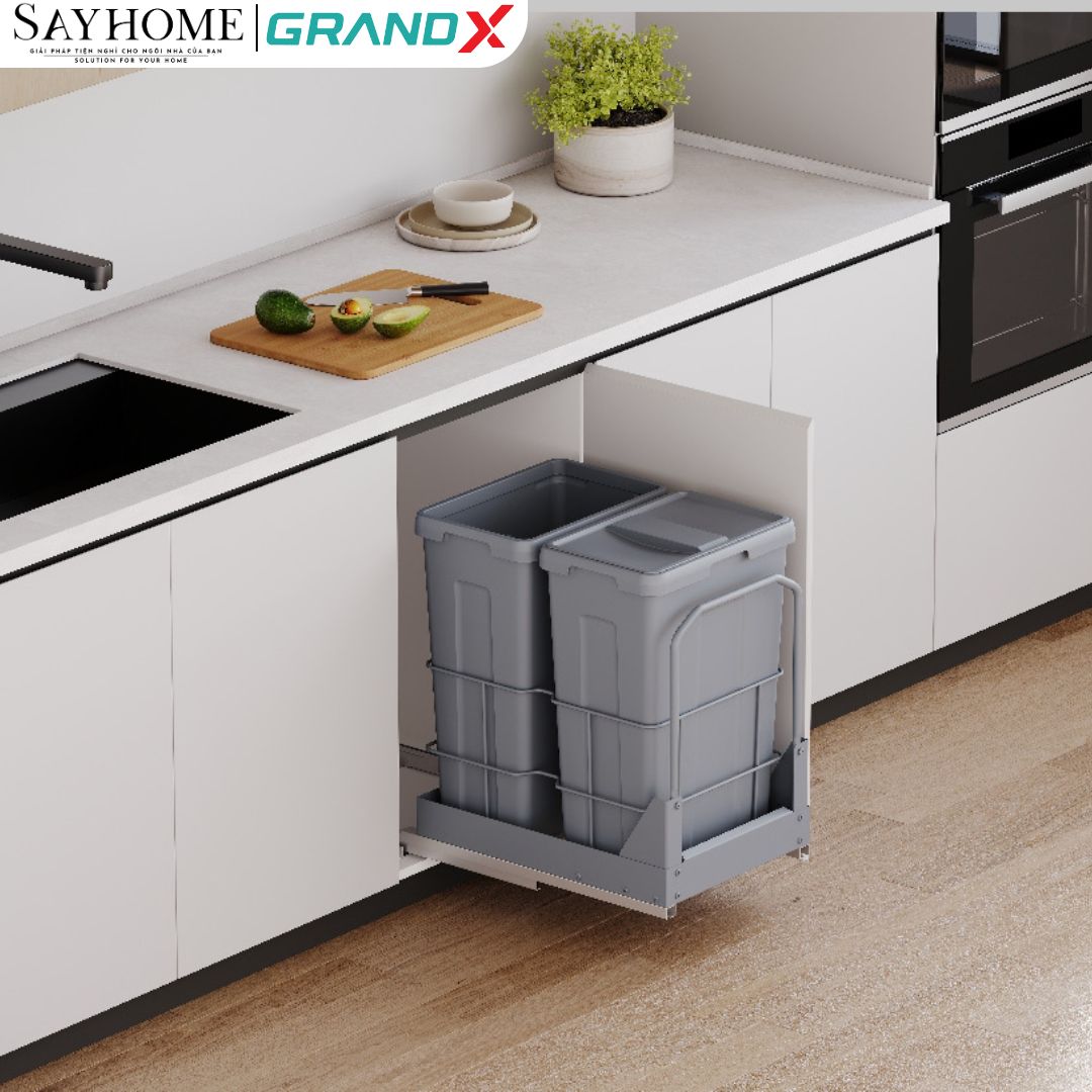 THÙNG RÁC ĐÔI CỞ LỚN LẮP ÂM TỦ CÁNH KÉO GRANDX XW.D40M - HÀNG CHÍNH HÃNG
