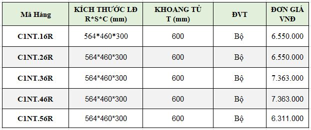 | Mã hàng | C1NT.16R, C1NT.26R, C1NT.36R, C1NT.46R, C1NT.56R |