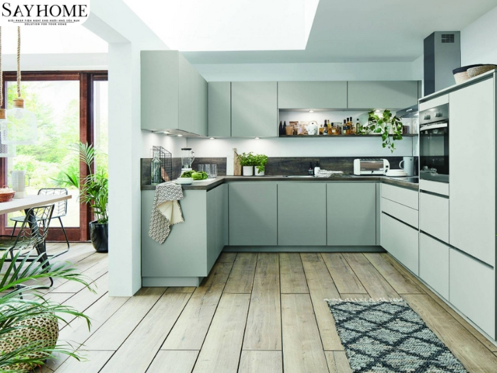 Tủ bếp chữ U là giải pháp cho những gia đình có nhiều thiết bị – dụng cụ nấu ăn nhưng muốn không gian luôn gọn gàng.