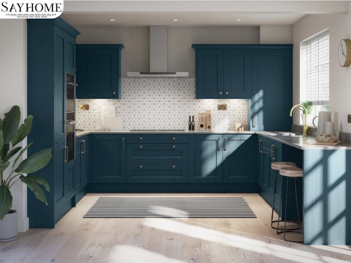 Tủ bếp chữ U giúp bạn sử dụng hiệu quả cả ba mặt tường trong không gian bếp.