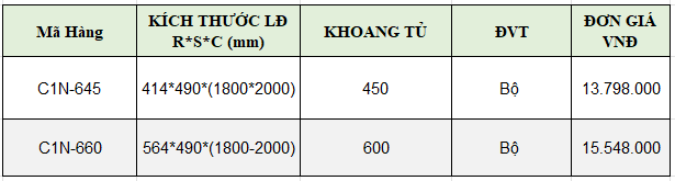| Kích thước | C1N-645: 414*490*(1800-2000) |