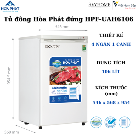 Tủ đông Hòa Phát HPF UAH6106 đứng - Tủ trữ sữa dành cho mẹ bỉm - Hàng chính hãng