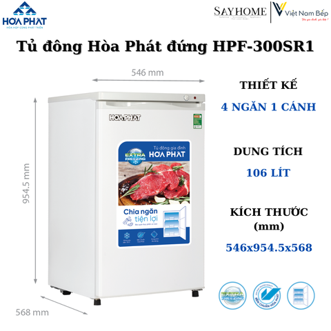 Tủ đông Hòa Phát HUF 300SR1 đứng - Tủ trữ sữa dành cho mẹ bỉm - Hàng chính hãng