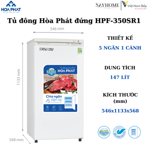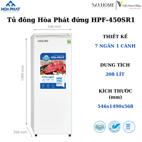 Tủ đông Hòa Phát HUF 450SR1 đứng 208 Lít - Bảo hành 30 tháng
