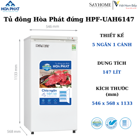Tủ đông Hòa Phát HPF-UAH6147 đứng - Tủ trữ sữa dành cho mẹ bỉm - Hàng chính hãng