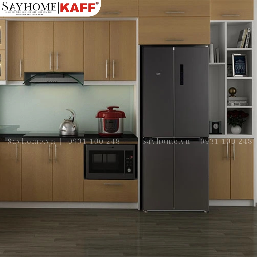 SAYHOME - Solutions for your Home mang đến cho gia đình bạn Tủ lạnh KAFF KF-BCD446W với đường nét thiết kế hiện đại, sang trọng, mặt kính đẳng cấp làm tôn lên sự nổi bật cho gian bếp nhà bạn .Tủ lạnh KAFF KF-BCD446W được sản xuất trên dây chuyền công nghệ hiện đại với kiểu dáng Side By Side dạng Multi door và chất lượng đạt chuẩn Châu Âu. Sản phẩm được đánh giá là sở hữu nhiều tính năng thông minh, dung tích lớn có thể chứa đựng nhiều loại đồ ăn, khả năng tiết kiệm điện năng tối đa so với các sản phẩm khác.