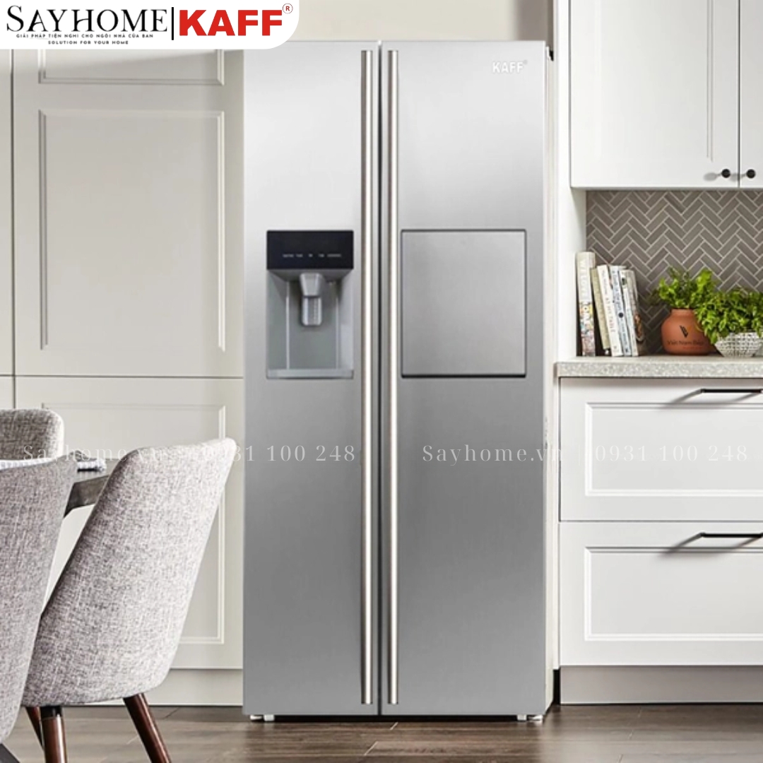 SAYHOME - Solutions for your Home mang đến cho gia đình bạn Tủ lạnh KAFF KF-BCD606MBR với đường nét thiết kế hiện đại, sang trọng, mặt kính đẳng cấp làm tôn lên sự nổi bật cho gian bếp nhà bạn .Tủ lạnh KAFF KF-BCD606MBR được sản xuất trên dây chuyền công nghệ hiện đại với kiểu dáng dạng Side By Side và chất lượng đạt chuẩn Châu Âu. Sản phẩm được đánh giá là sở hữu nhiều tính năng thông minh, dung tích lớn có thể chứa đựng nhiều loại đồ ăn, khả năng tiết kiệm điện năng tối đa so với các sản phẩm khác.